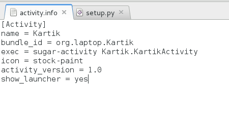 KartikActivity.activity/setup.py). The content should be like: